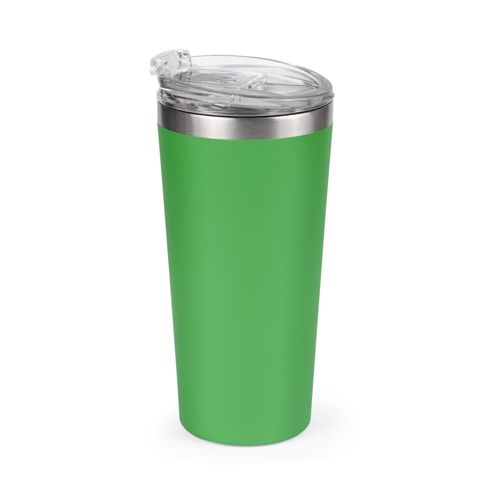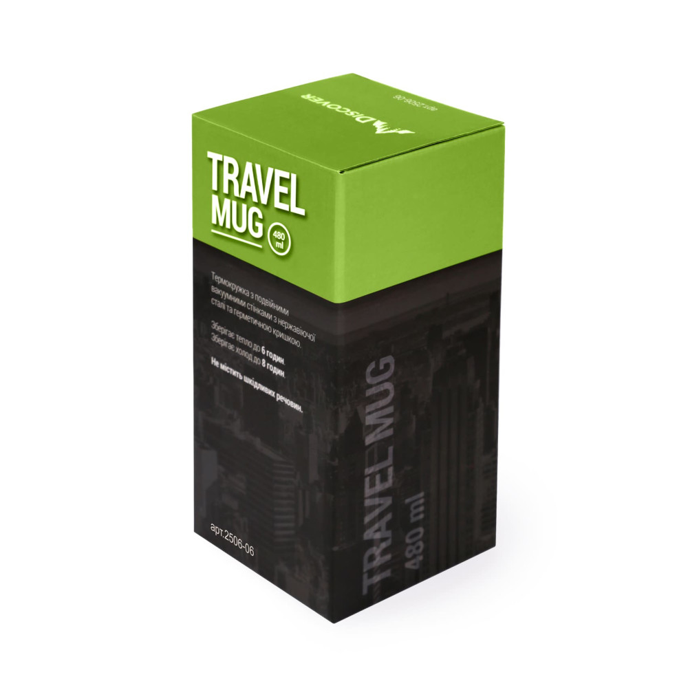 Термокружка з нержавіючої сталі, вкрита матовою кольоровою емаллю, кришка-непроливайка. Підтримує температуру до шести годин. Кришку можна мити в посудомийній машині. Корпус мити тільки вручну щоб не пошкодити кольорове покриття