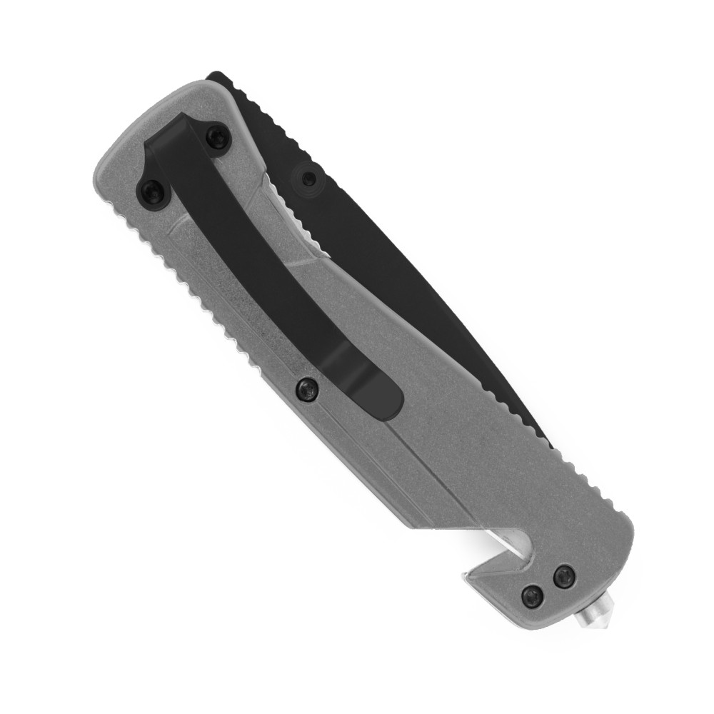 Ніж з високоякісної нержавіючої сталі, гострим лезом з фіксатором, кліпсою для чіпляння на ремінь. Має такі додаткові безпекові функції: - Стержень для вибивання і розбивання скла в автомобілі у випадку аварії якщо закриті або заблоковані двері. Ця функція може врятувати вам життя. - Подвійне приховане лезо для легкого обрізання реміня безпеки якщо заклинило реміневий механізм. Упаковка елегантна чорна коробка. Розмір в складеному стані 11,5 см., у відкритому 20,1 см.