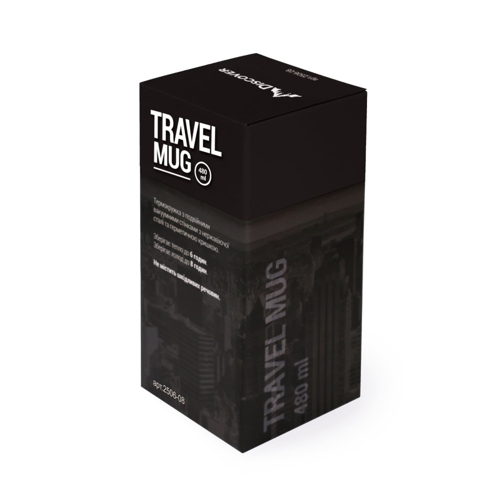 Термокружка з нержавіючої сталі, вкрита матовою кольоровою емаллю, кришка-непроливайка. Підтримує температуру до шести годин. Кришку можна мити в посудомийній машині. Корпус мити тільки вручну щоб не пошкодити кольорове покриття