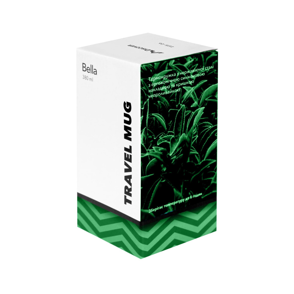 Термокружка об'ємом 380 мл з нержавіючої сталі. Має двошарову вакуумну констррукцію. Покриття емаль з ефектом «Ice» та має широке силіконове кільце, кришка з високоякісного пластику-тритан. Тримає напій гарячим до 6 годин, холодним до 8 годин. Кришку можна мити в посудомийній машині. Корпус мити тільки вручну щоб не пошкодити кольорове покриття. Індивідуальна картонна подарункова коробка. Розмір індивідуальної коробки: 17,3 х 9 х 9 см.