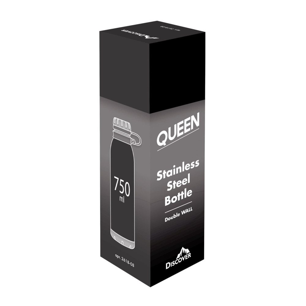 Термопляшка з подвійною стінкою з нержавіючої сталі. Висота 29 см., діаметр 7,4 см. Об'єм 750 мл. Індивідуальна картонна подарункова коробка. Розмір індивідуальної коробки: 29,5 х 8,5 х 8,5 см. Кришка герметична. Підтримує температуру до 12-ти годин