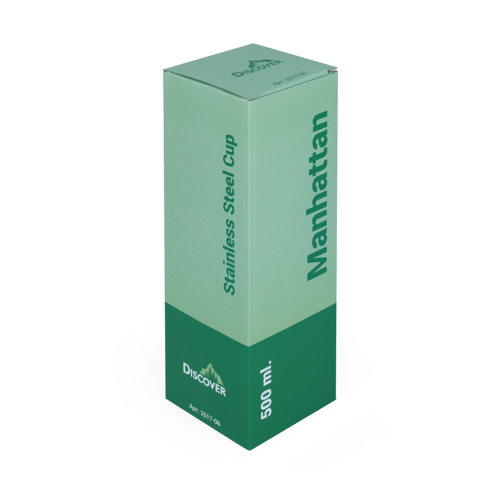 Термокружка з нержавіючої сталі, покриття матове, кришка непроливайка. Підтримує температуру протягом 6-ти годин. Об'єм 500 мл. Індивідуальна картонна подарункова коробка. Розмір індивідуальної коробки: 24 х 7,5 х 7,5 см.