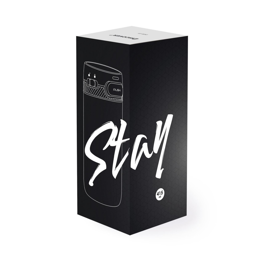 Вакуумна термокружка Stay це високоякісний продукт з нержавіючої сталі 304, вкрита матовою кольоровою емаллю. Кришка з нажимною кнопокою, яка відкриває клапан при необхідності надійно блокується слайдером від випадкового відкривання. Підтримує температуру до 6 годин