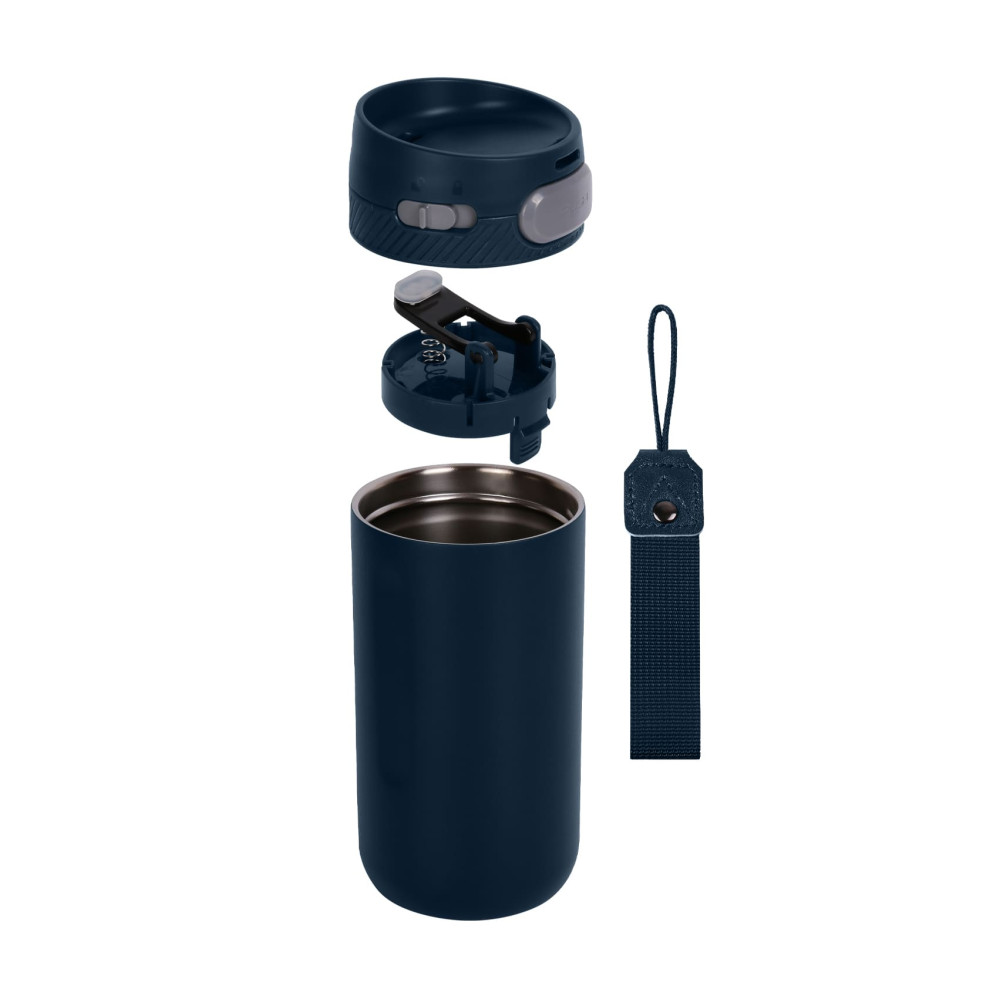 Вакуумна термокружка Stay це високоякісний продукт з нержавіючої сталі 304, вкрита матовою кольоровою емаллю. Кришка з нажимною кнопокою, яка відкриває клапан при необхідності надійно блокується слайдером від випадкового відкривання. Підтримує температуру до 6 годин