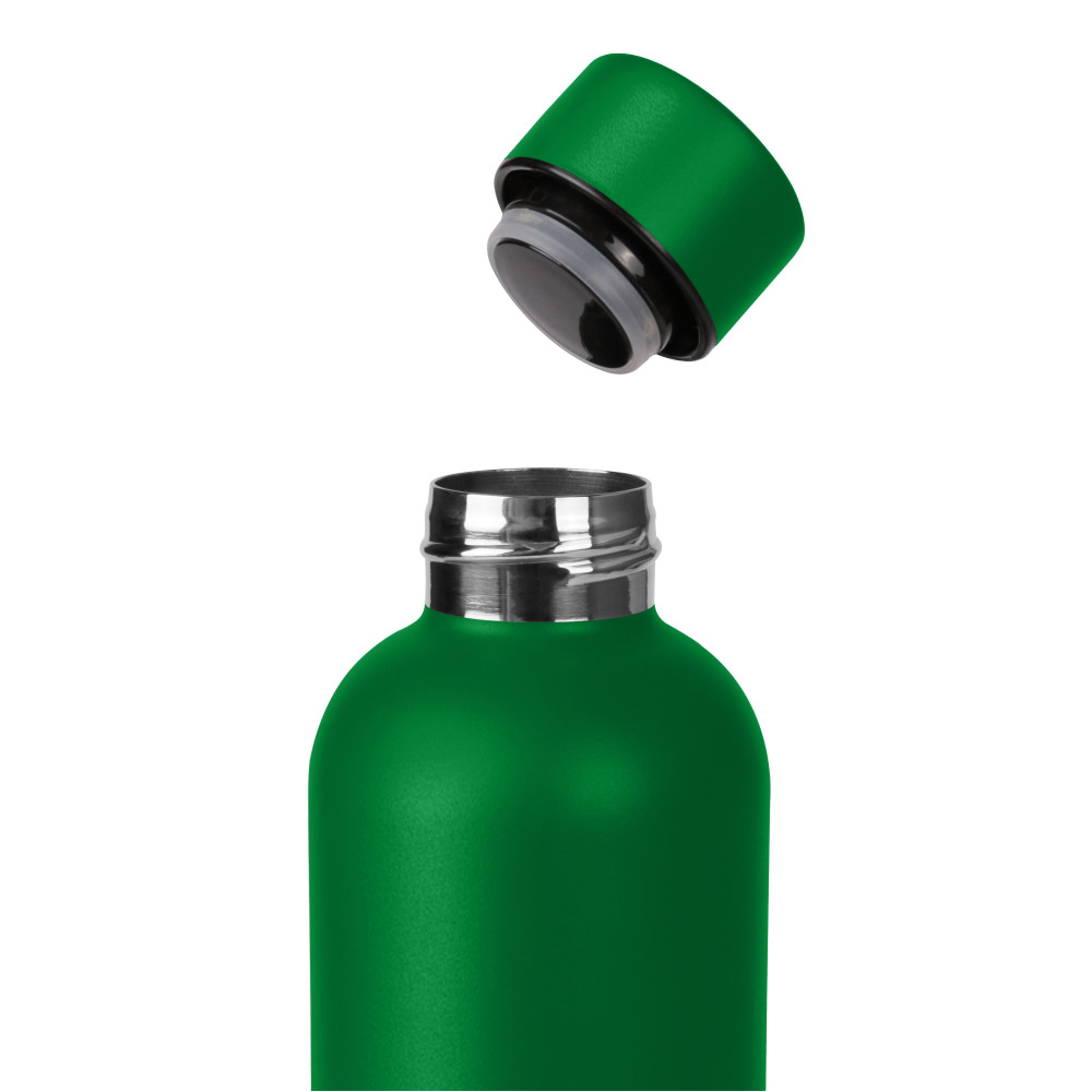 Термопляшка з подвійною стінкою з нержавіючої сталі. Висота 21,5 см., діаметр 7,2 см. Об'єм 500 мл. Індивідуальна картонна подарункова коробка. Розмір індивідуальної коробки: 26 х 7,6 х 7,6 см. Кришка герметична. Підтримує температуру до 12-ти годин
