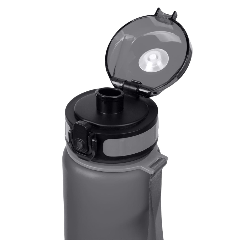 Пляшка для пиття ергономічної форми. Кришка з надійним відкидним механізмом який блокується, має ручку для зручного тримання. Матеріал: Tritan-пластик, силіконова вставка