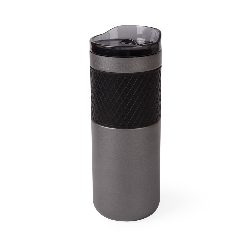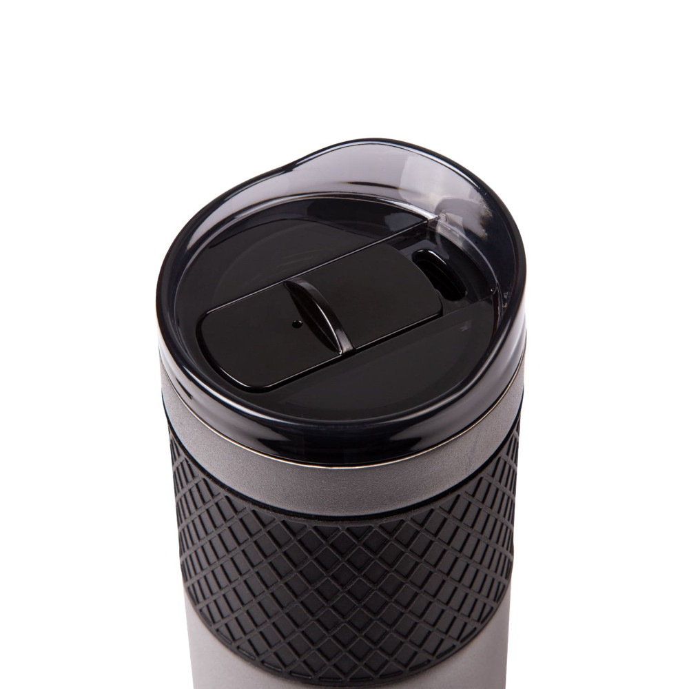 Термокружка з подвійною стінкою з нержавіючої сталі, з пластиковою кришкою та ергономічною силіконовою накладкою