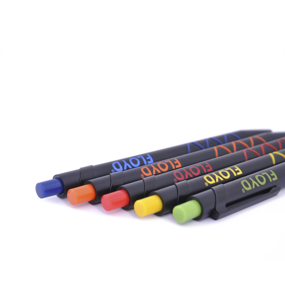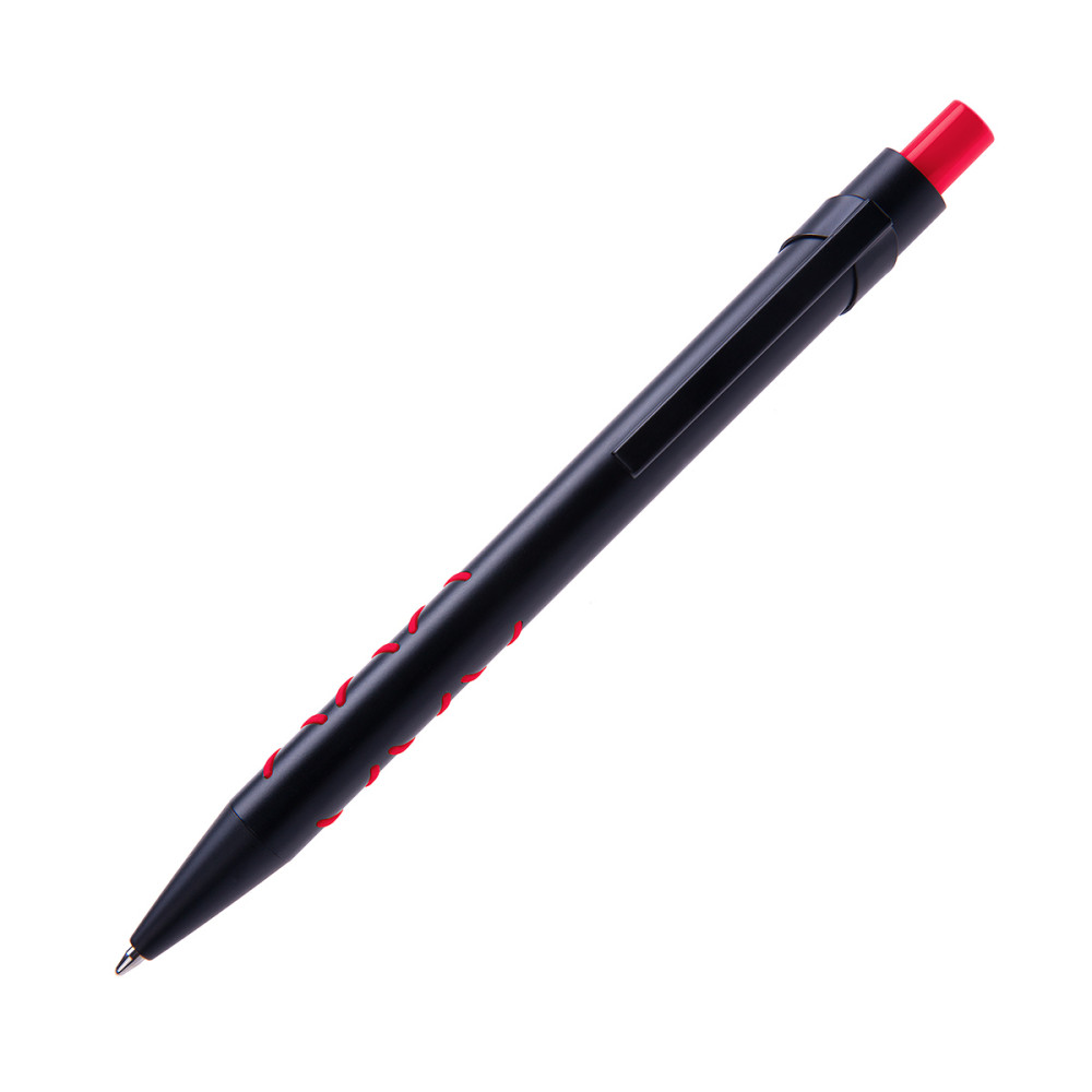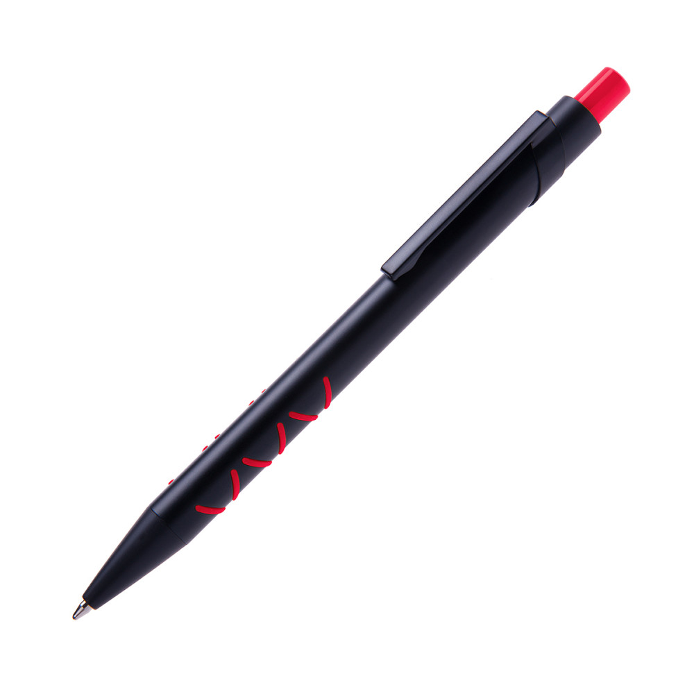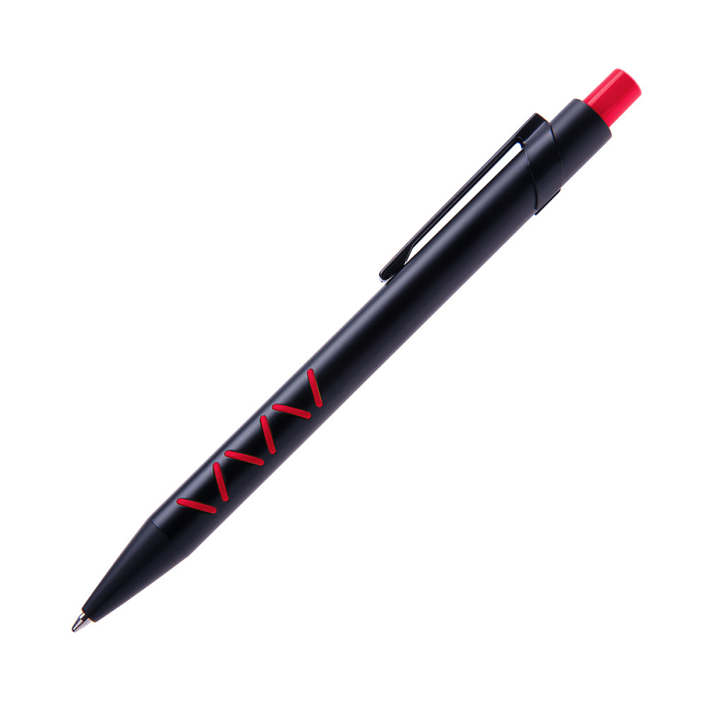 Ручка металева, матова зі спеціальною кольоровою підложкою, яка при гравіюванні лого в колір елементів виробу (кольорове гравіювання COLOR BASE) стержень з синім чорнилом