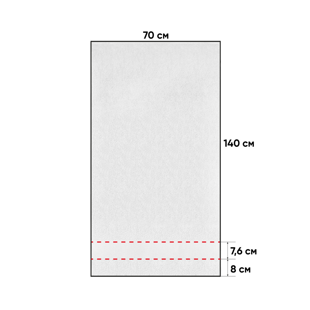 Рушник 100% бавовна, щільність 500 г/м2., розмір 70Х140 см.. Кількість у ящику 20шт., індивідуальна упаковка, поліетиленовий пакет. Подвійна стрічка на загибі, функціональна петля. По одному краю полотенця є гладкий бордюр для нанесення логотипу, ширина бордюра 7,6 см.