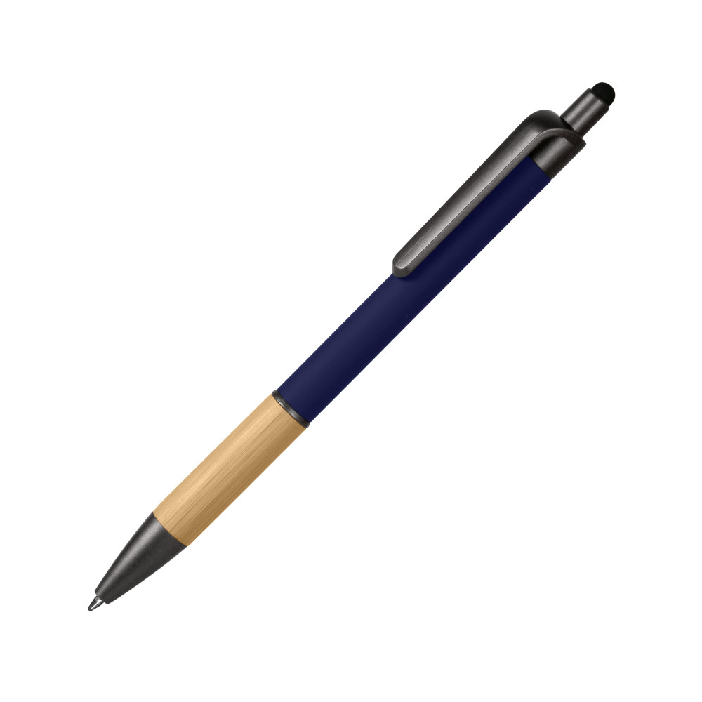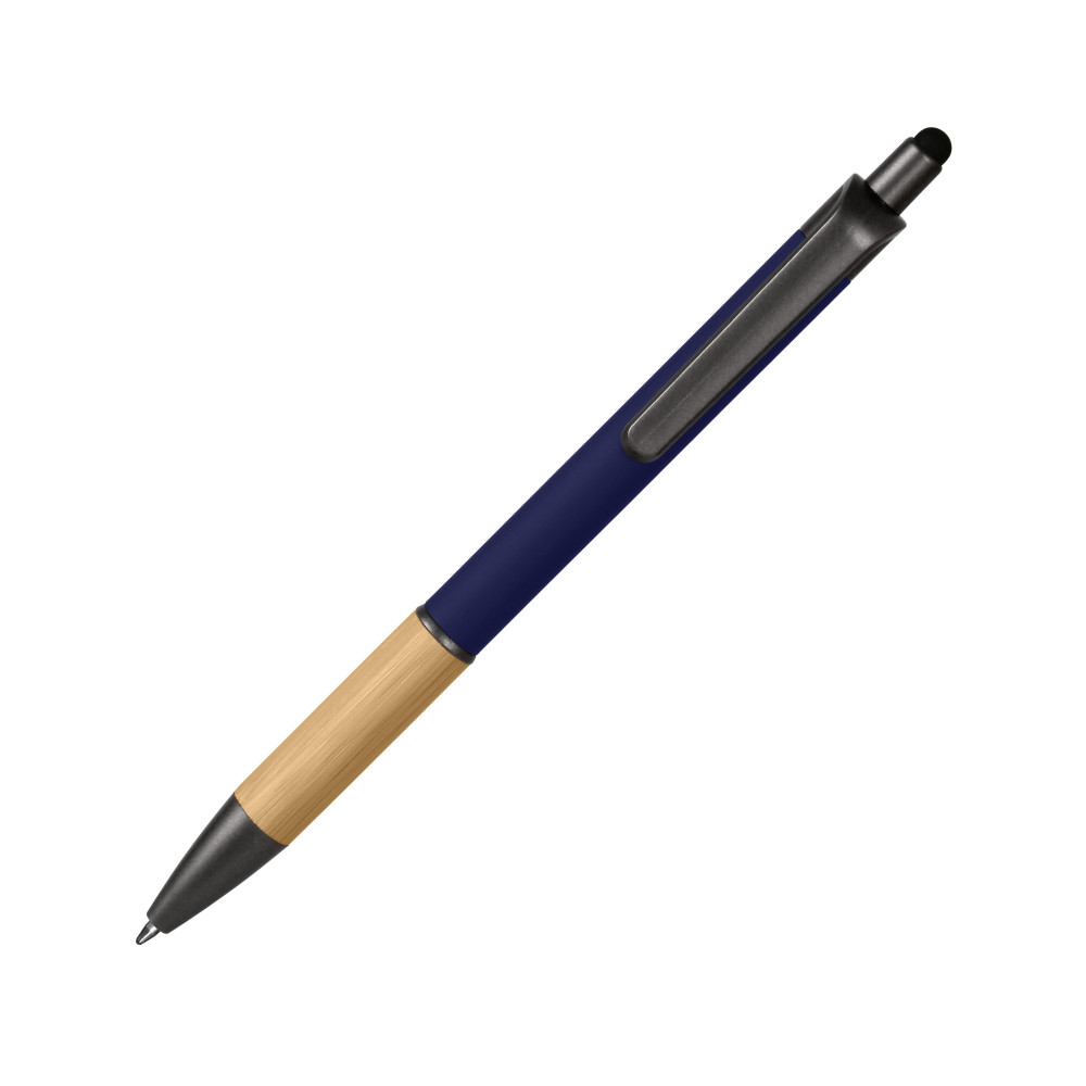 Ручка-стилус кулькова, корпус металевий з покриттям софт-тач, бамбукова вставка, кліп з пластику. Стержень з синім чорнилом. Рекомендований метод нанесення - гравіювання, УФ-друк. Матеріал: метал, пластик, силікон