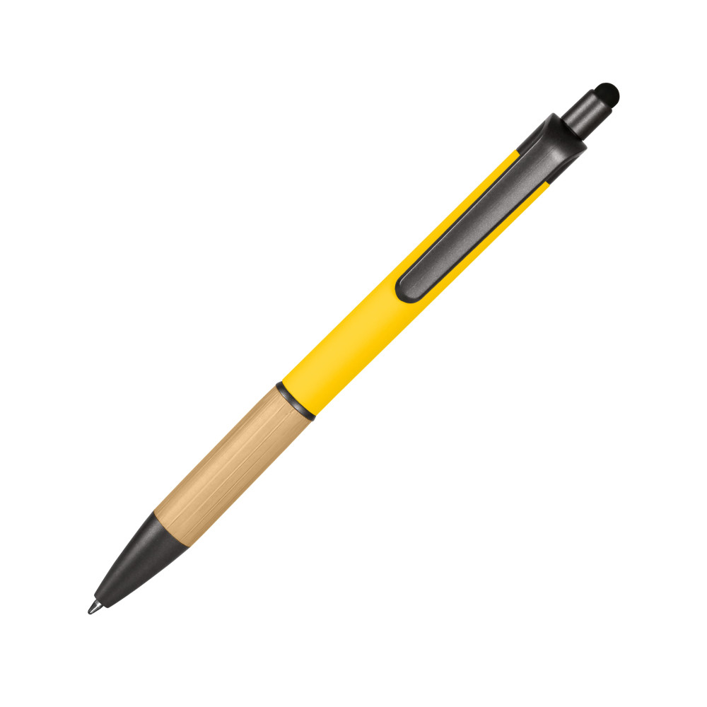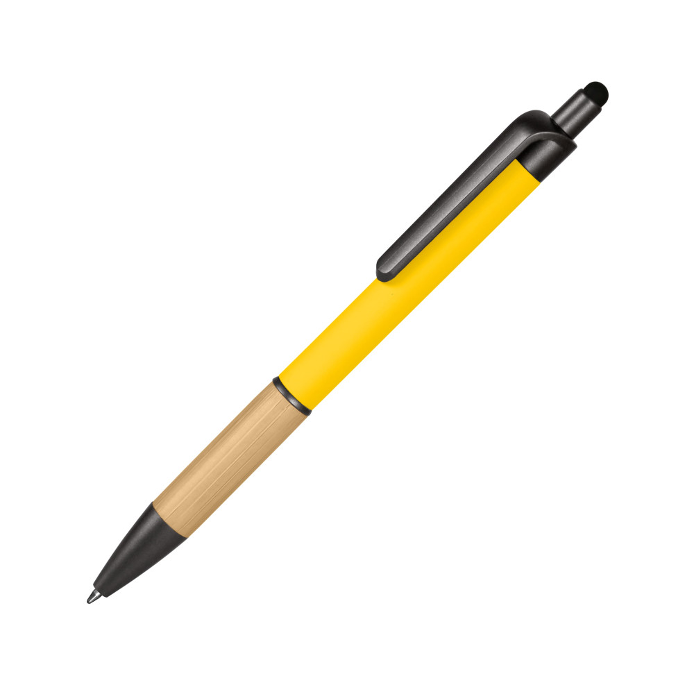 Ручка-стилус кулькова, корпус металевий з покриттям софт-тач, бамбукова вставка, кліп з пластику. Стержень з синім чорнилом. Рекомендований метод нанесення - гравіювання, УФ-друк. Матеріал: метал, пластик, силікон