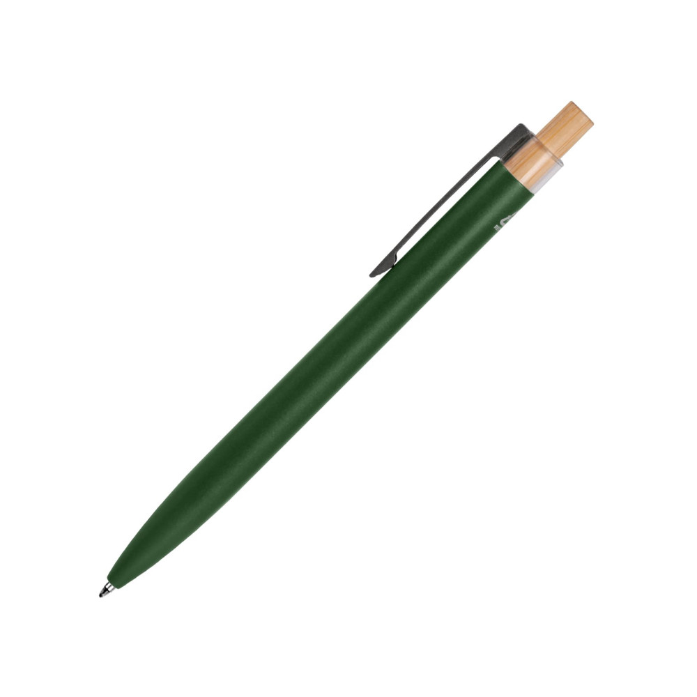Ручка кулькова, покриття матове, бамбукова вставка, кліп з пластику. Стержень з синім чорнилом