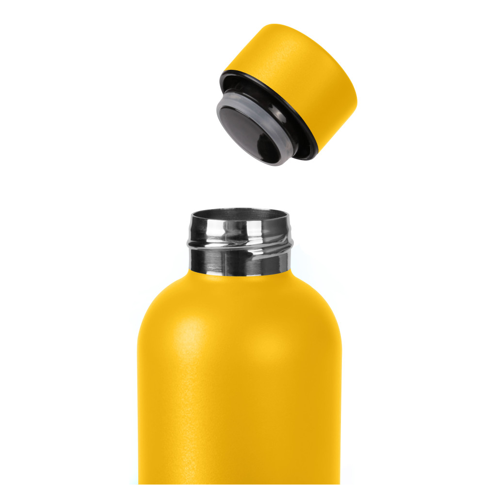 Термопляшка з подвійною стінкою з нержавіючої сталі. Висота 21,5 см., діаметр 7,2 см. Об'єм 500 мл. Індивідуальна картонна подарункова коробка. Розмір індивідуальної коробки: 26 х 7,6 х 7,6 см. Кришка герметична. Підтримує температуру до 12-ти годин