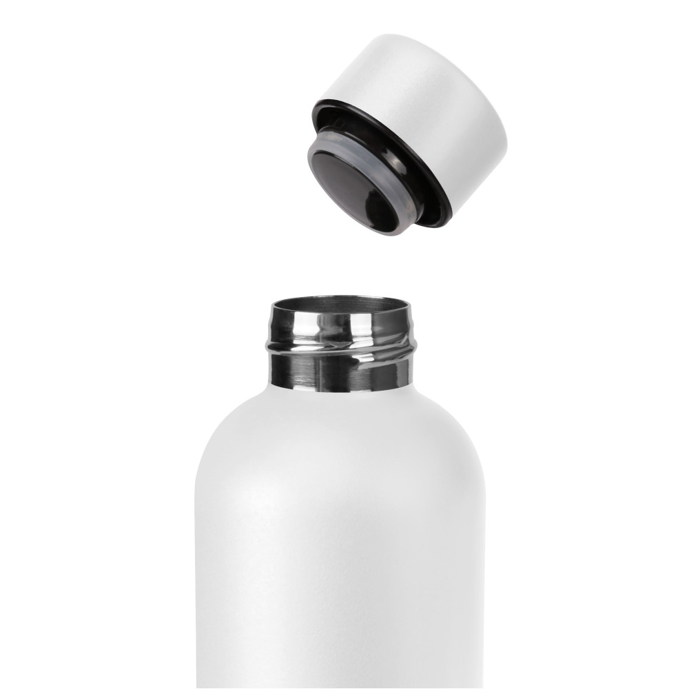 Термопляшка з подвійною стінкою з нержавіючої сталі. Висота 21,5 см., діаметр 7,2 см. Об'єм 500 мл. Індивідуальна картонна подарункова коробка. Розмір індивідуальної коробки: 26 х 7,6 х 7,6 см. Кришка герметична. Підтримує температуру до 12-ти годин