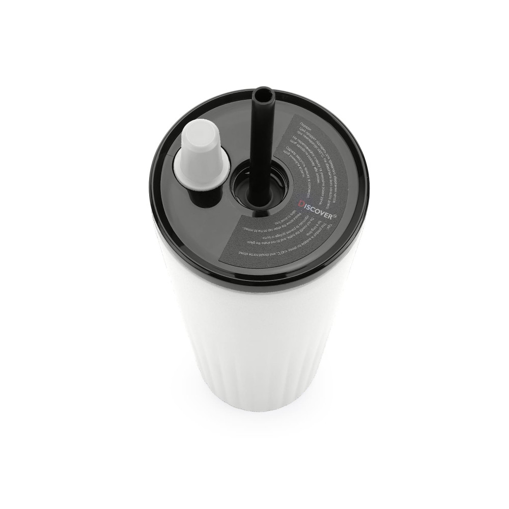 Термокружка з подвійними вакуумними стінками з нержавіючої сталі. Кришка з герметичного матеріалу тритан та із соломинкою, яку можна легко герметично закрити. Підтримує температуру до 6 годин.