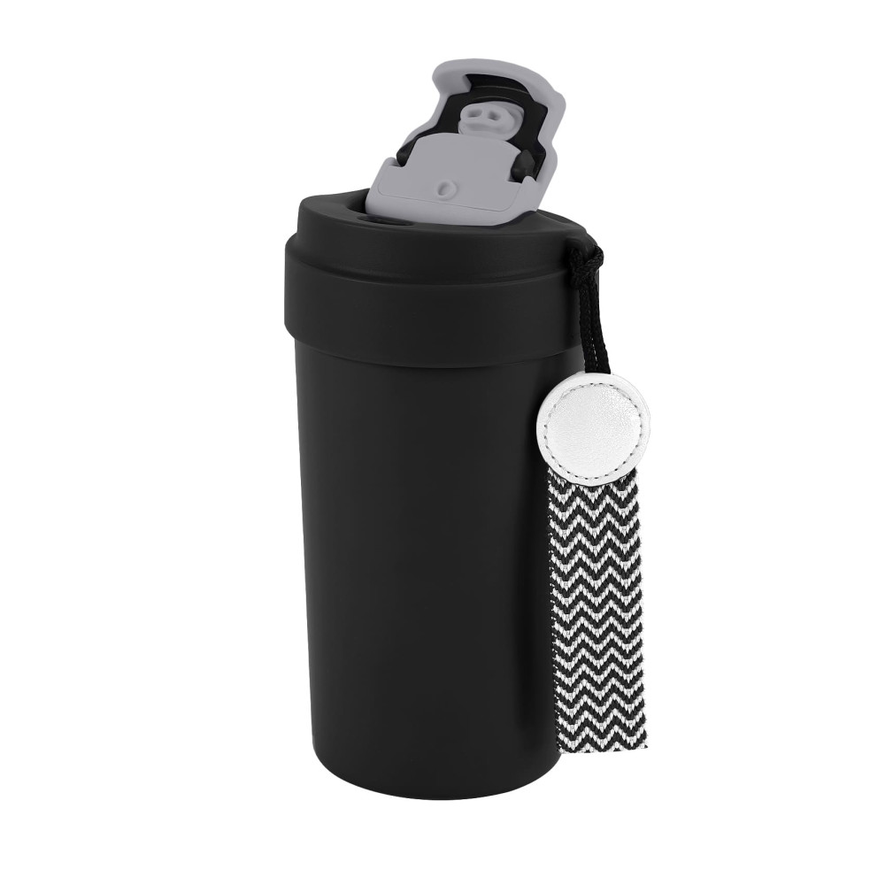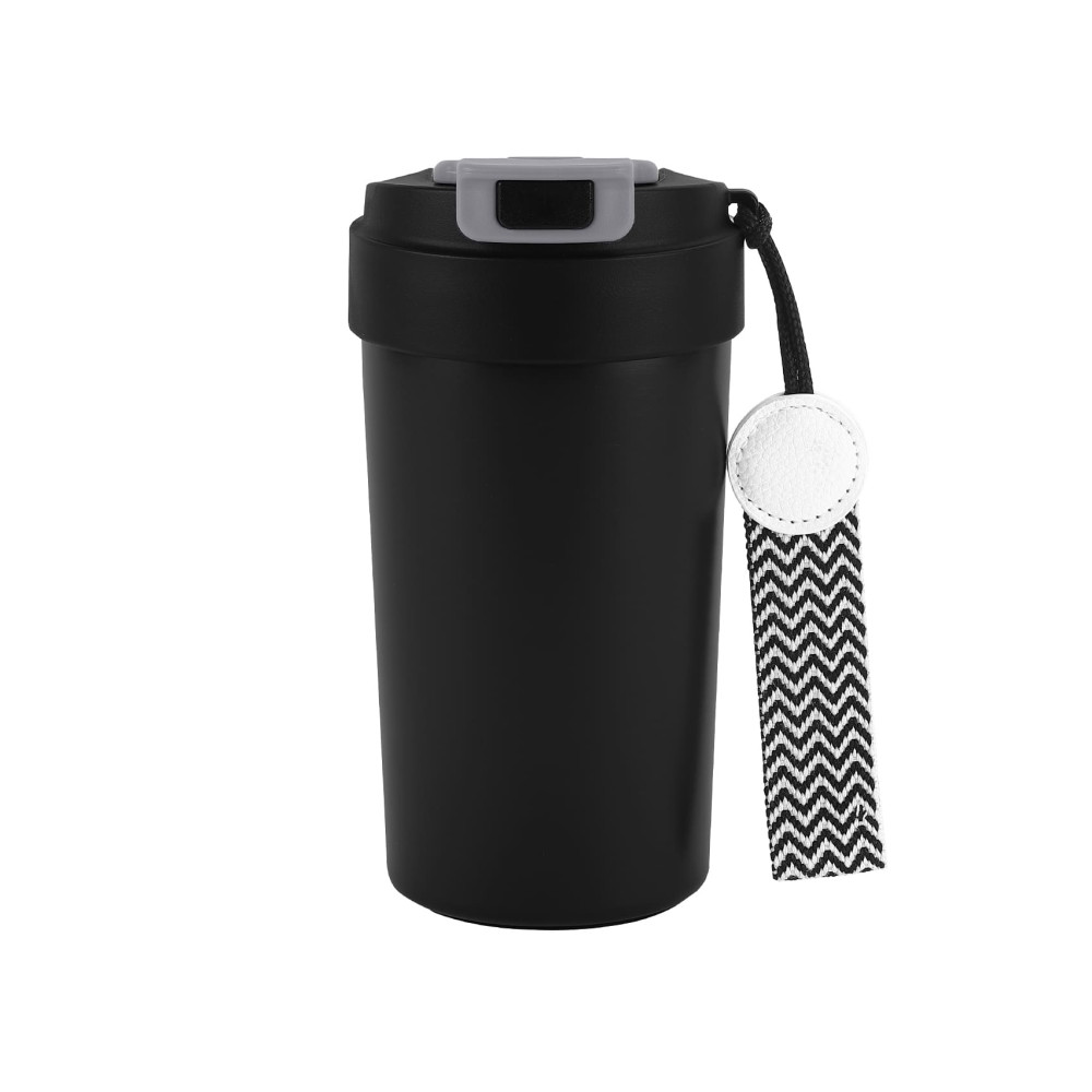 Термокружка з подвійною стінкою з нержавіючої сталі та вакуумною кришкою з кнопкою блокування.