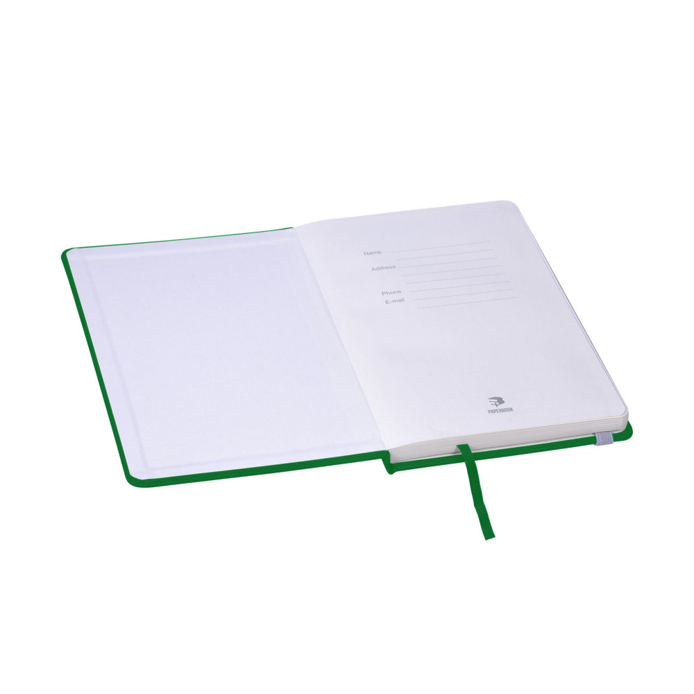 Тверда та приємна на дотик обкладинка з широкою резинкою. Є можливість додати металеву шильду під нанесення логотипу (постачається окремо). Кремовий папір. Внутрішня кишеня, 8 аркушів з перфорацією для легокого відривання.