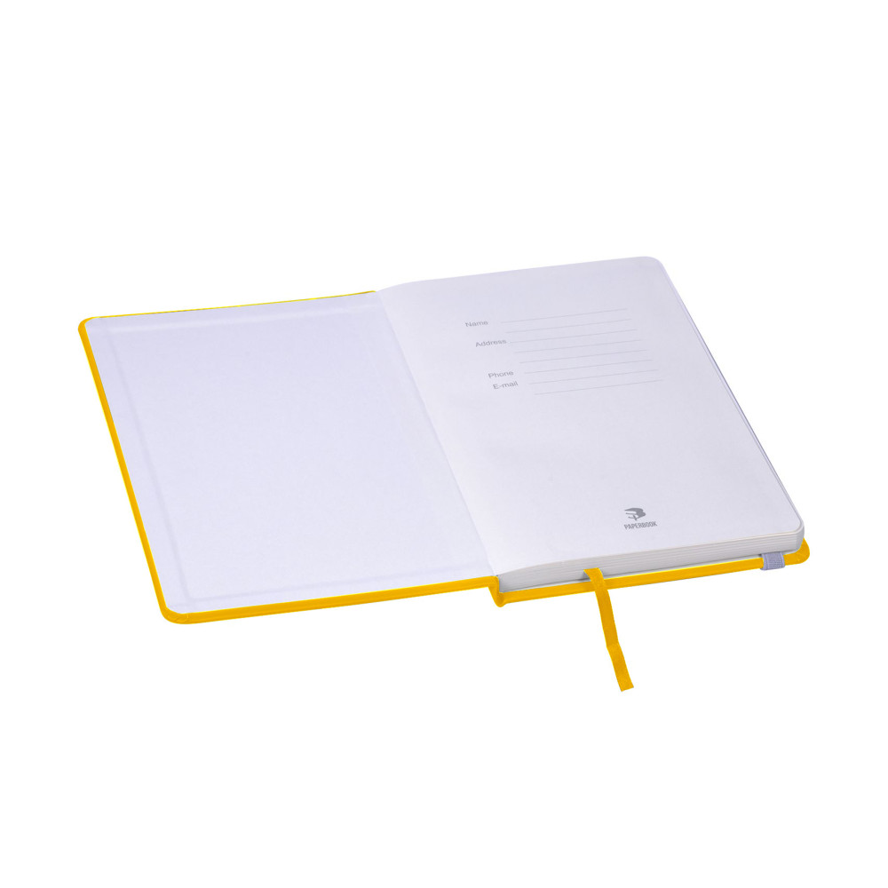 Тверда та приємна на дотик обкладинка з широкою резинкою. Є можливість додати металеву шильду під нанесення логотипу (постачається окремо). Кремовий папір. Внутрішня кишеня, 8 аркушів з перфорацією для легокого відривання.