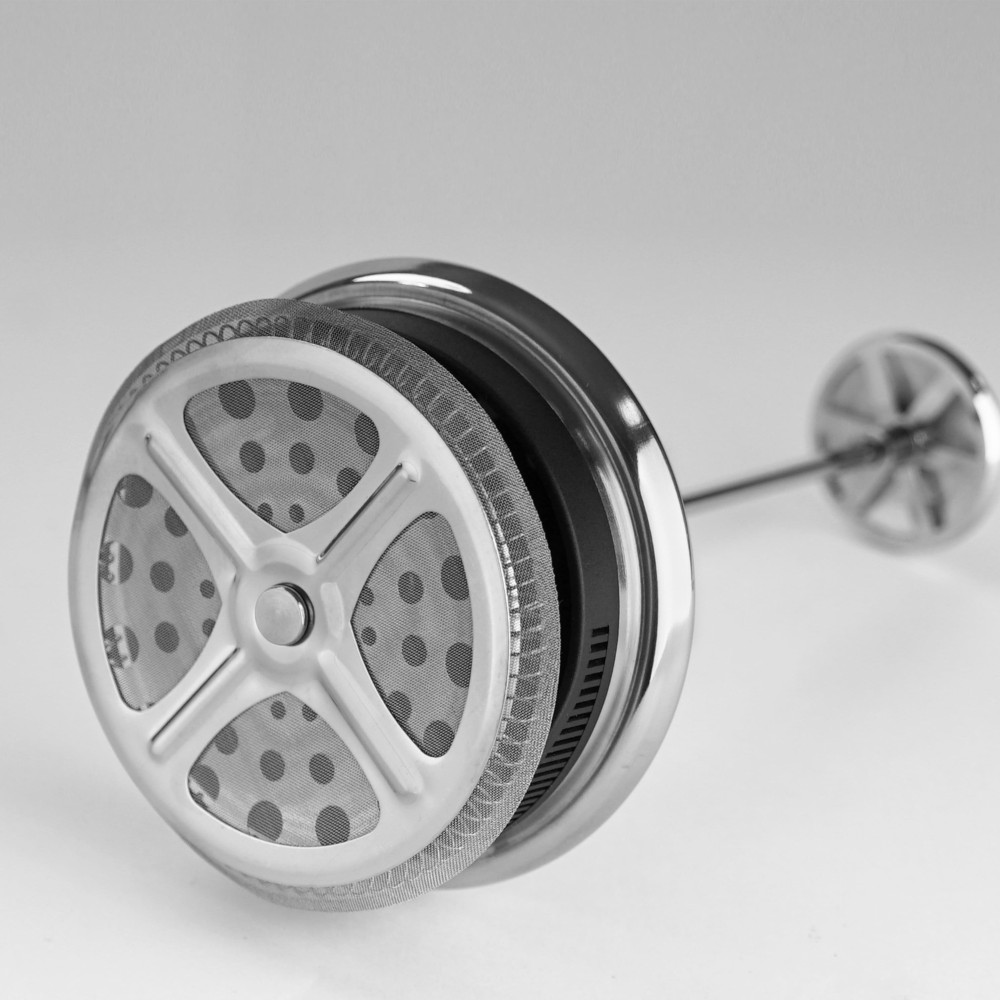 Френч-прес підходить для заварювання як чаю так і кави. Каркас з нержавіючої сталі, колба з'ємна з борисілікатного високоякісного скла, внутришні деталі з нержавіючої сталі, ручка та підставка з пластику. Висота 21,3 см., діаметр 10,4 см. Об'єм 1000 мл. Індивідуальна картонна подарункова коробка. Розмір індивідуальної коробки: 22,5 х 14,8 х 11,6 см. Рекомендований метод нанесення - гравіювання.