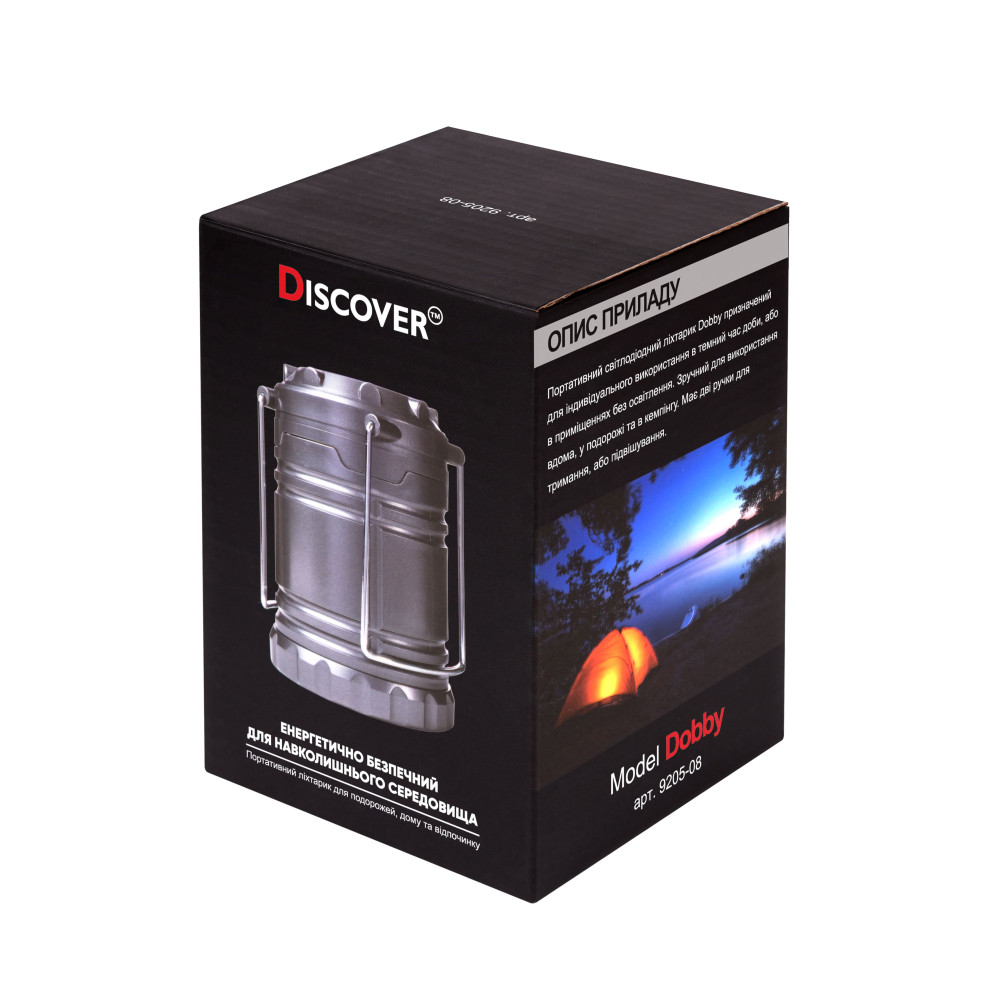 Портативний, світлодіодний ліхтарик Dobby призначений для індивідуального використання в темний час доби, або в приміщеннях без освітлення. Зручний для використання вдома, у подорожі та в кемпінгу. Має дві ручки для тримання, або підвішування. Енергетично безпечний для навколишнього середовища. Розмір: голова діаметр 87 мм, висота в закритому 12.3 см (відкритий 18.0 см). Режим: 1. ПОПЕРЕДЖЕННЯ: Не направляйте промінь в очі, оскільки це може зашкодити зору. Бережіть прилад подалі від дітей.