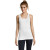 Жіноча майка класичного типу має бічні шви з тонкою окантовкою. Спереду у моделі круглий виріз та неширокі бретелі, ззаду – майже вся спина закрита.