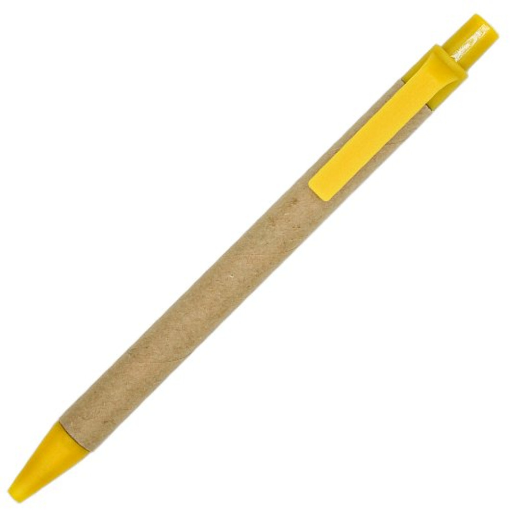 Корпус ручки із пресованого паперу доповнений кольоровими елементами із пластику.