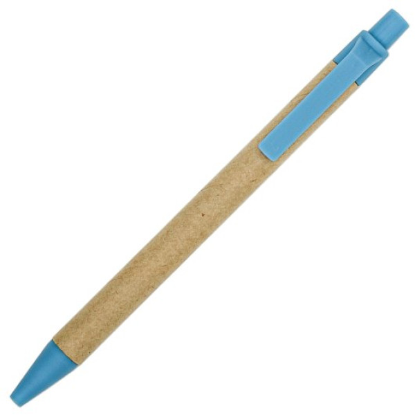 Корпус ручки із пресованого паперу доповнений кольоровими елементами із пластику.