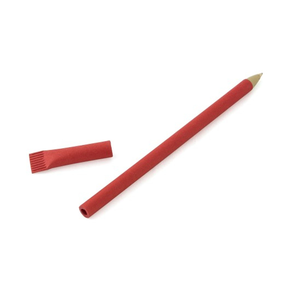 Корпус зроблений із пресованого паперу у формі трубочки з накінечником із біорозкладного пластика для більшої міцності та фіксації пишучого стрижня, не розкручується. Довжина 15 см. Ручка доповнена оригінальним ковпачком того ж кольору. На корпус і ковпачок можна нанести логотип або рекламний слоган вашої компанії тамподруком.