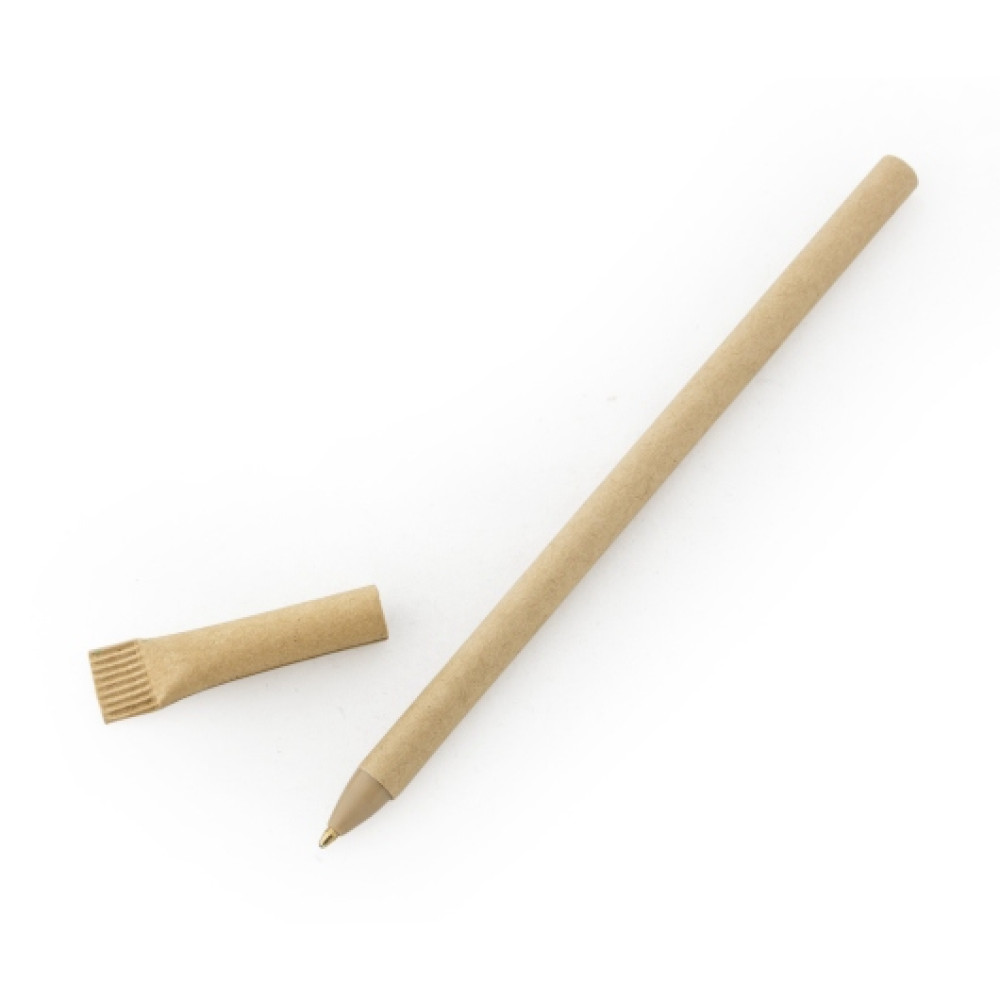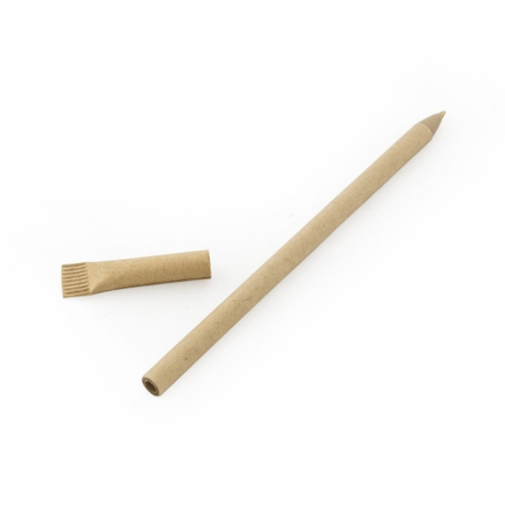Корпус зроблений із пресованого паперу у формі трубочки з накінечником із біорозкладного пластика для більшої міцності та фіксації пишучого стрижня, не розкручується. Довжина 15 см. Ручка доповнена оригінальним ковпачком того ж кольору. На корпус і ковпачок можна нанести логотип або рекламний слоган вашої компанії тамподруком.