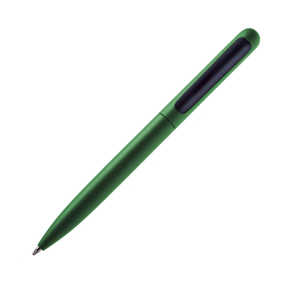 Ручка кулькова матова, металева. При включеній ручці кліп втягуеться спеціальним механізмом в корпус, щоб не можливо зачепити на кишеню, при виключеній ручці кліп виходить с корпусу. Ця система захистить ваші кишені від плям пасти зі стержня ручки. Стержень з синім чорнилом