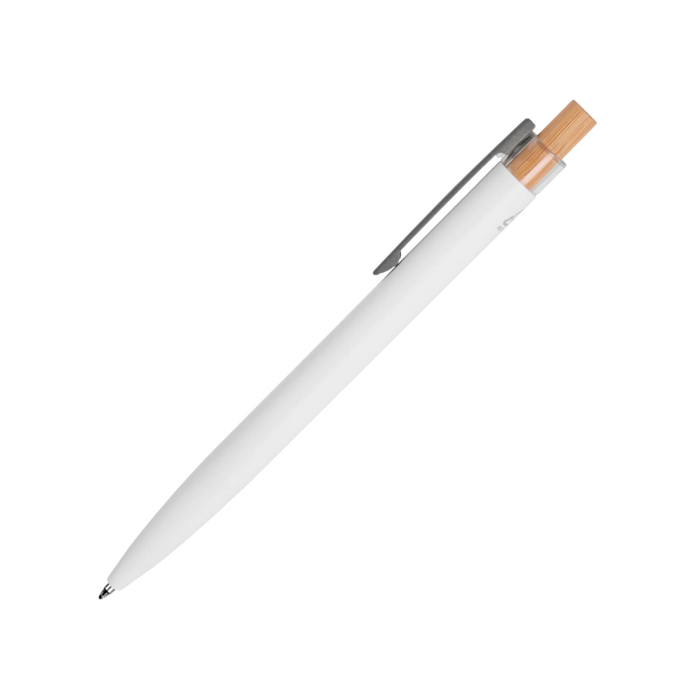 Ручка кулькова, покриття матове, бамбукова вставка, кліп з пластику. Стержень з синім чорнилом