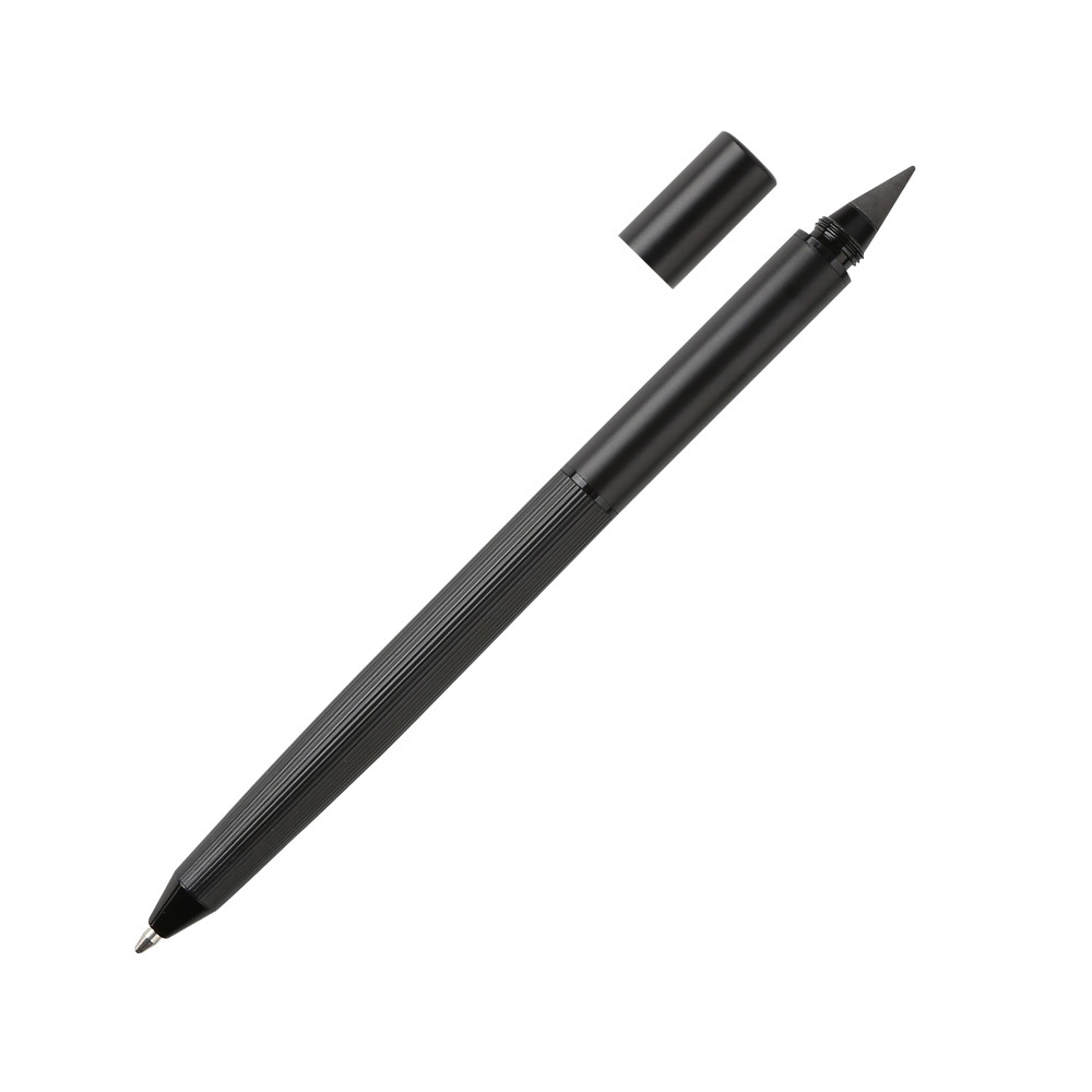 Ручка металева у футлярі Born поєднує в собі стиль і преміальну якість. Її елегантний металевий корпус та зручний дизайн роблять її ідеальним аксесуаром для ділових людей та подарунком для особливих моментів. Вона поставляється в розкішному футлярі, що додає ще більше елегантності та статусу. З одного боку ручка, з іншого - вічний олівець. Ручка з синім чорнилом.