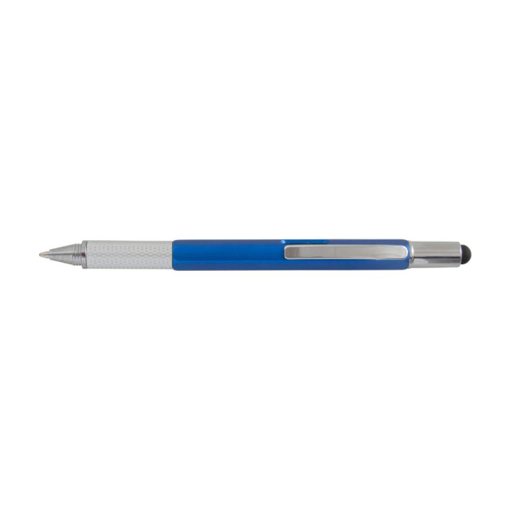Кулькова ручка, яка об'єднала в одному предметі цілий набір інструментів: рівень, викрутки з хрестовим і прямим шліцом, лінійки, а також чутливий стилус, сумісний з будь-яким сенсорним екраном. Такий чудовий аксесуар замінить вам відразу 6 різних предметів.