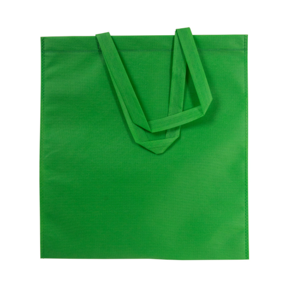 Зручна сумка багаторазового використання з міцного нетканого матеріалу з довгими ручками. Витримує вагу до 18 кг і не пропускає вологу.