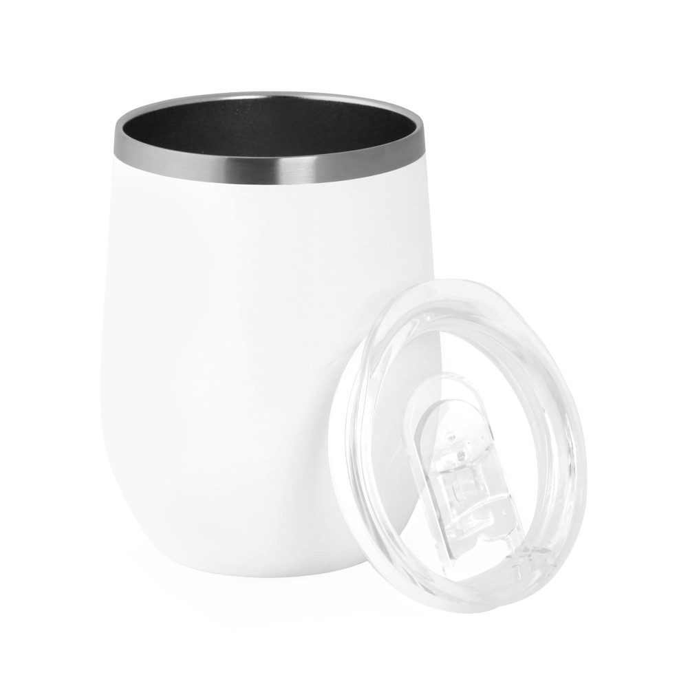 Металева термочашка з подвійними стінками з нержавіючої сталі ( глянцеве покриття емаль) і пластиковою прозорою кришкою з зсувним клапаном. Об'єм 350 мл. Індивідуальна картонна подарункова коробка. Розмір індивідуальної коробки: 12,5 х 9,7 х 9,7 см. Кришку можна мити в посудомийній машині. Корпус мити тільки вручну, щоб не пошкодити кольорове покриття. Підтримує температуру протягом 6-ти годин