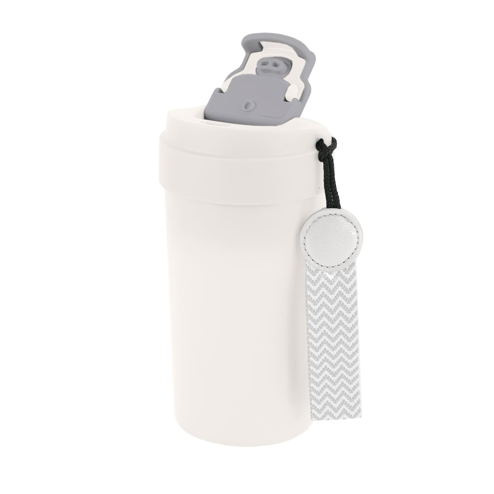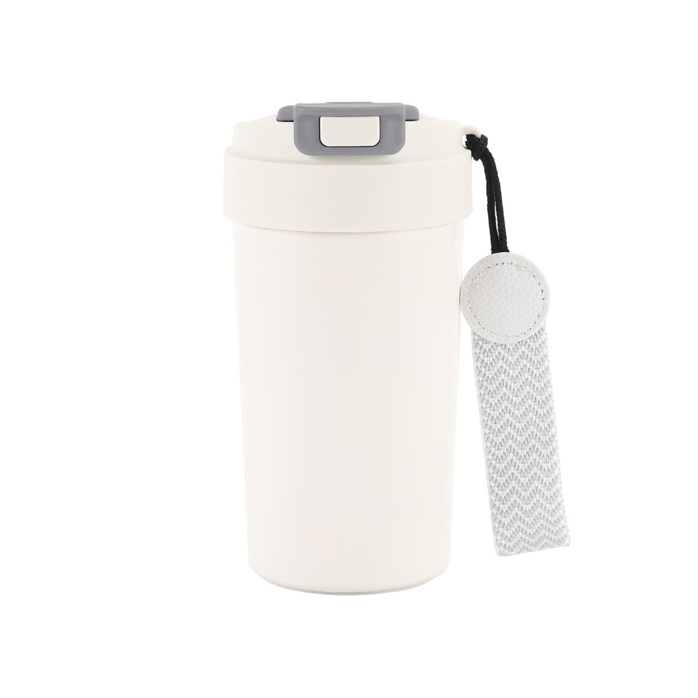 Термокружка з подвійною стінкою з нержавіючої сталі та вакуумною кришкою з кнопкою блокування.