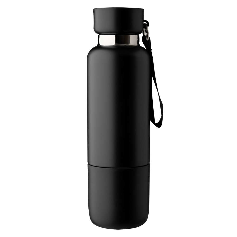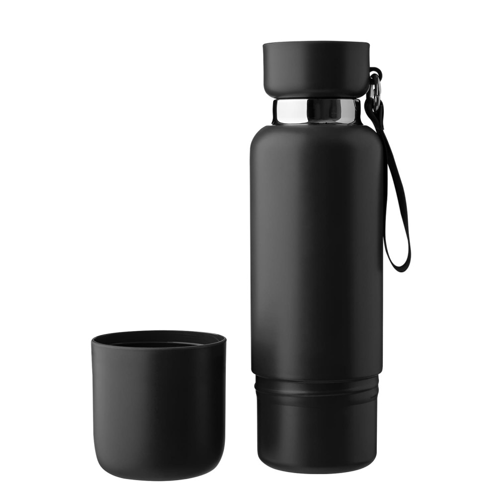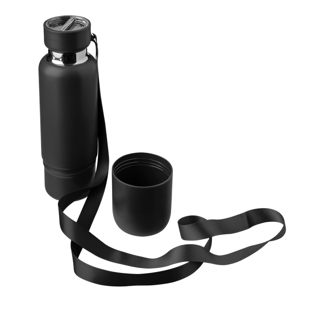 Термопляшка зі з’ємною чашкою, з подвійною стінкою з нержавіючої сталі. Має в комплекті короткий та довгий ремінець для перенесення Ідеальна для подорожей, офісу чи активного відпочинку.