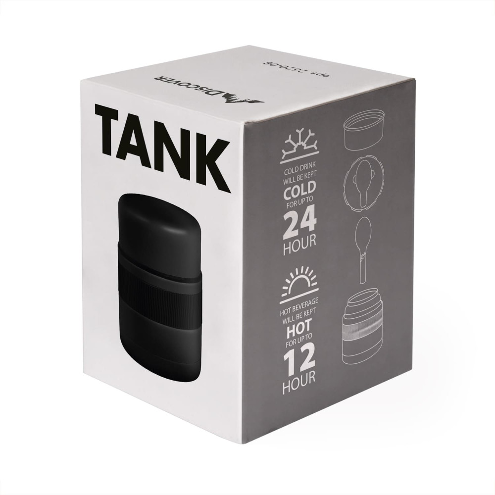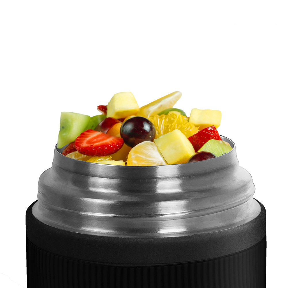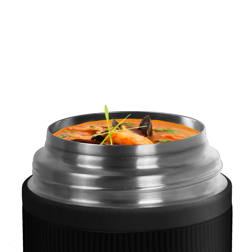 Термос для їжі з нержавіючої сталі, має подвійну вакуумну стінку, внутрішня частина з високоякісної харчової нержавіючої сталі 304. Зберігає холод до 24 години, тепло до 12 годин. Об'єм 500 мл. В комплекті: зручна складна сталева ложка, та кришка, яка може послужити за миску. Широка горловина дозволяє зручно наповнювати та мити контейнер.Індивідуальна картонна подарункова коробка. Розмір індивідуальної коробки: 15,5 х 11,2 х 11,2 см. Діаметр місця нанесення на кришці 8,5 см.